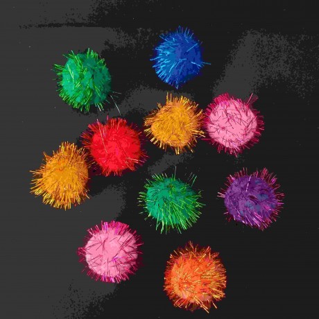 עשרה פונפונים נוצצים בצבעים כהים בגודל 4 ס"מ
