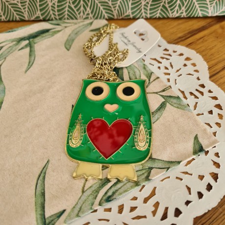 ינשוף - תליון עם שרשרת מהודר צבע ירוק TTNL69