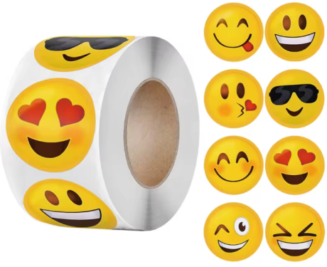 גלגל של כ-500 מדבקות חייכנים עגולות קוטר 2.5 ס"מ