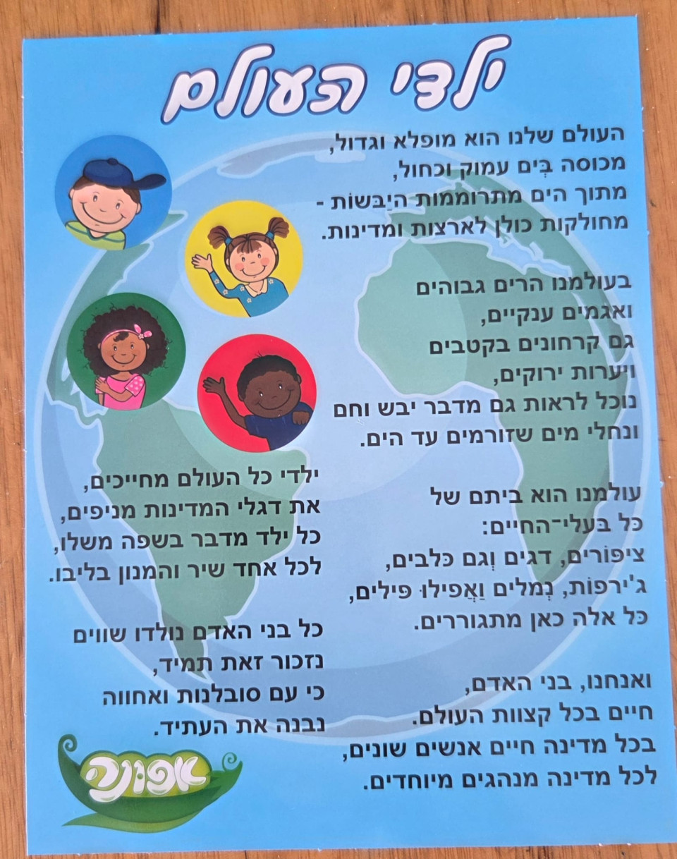 מפה מעוצבת + 8 תמונות של ילדים מהעולם + סיפור קצר + כותרת