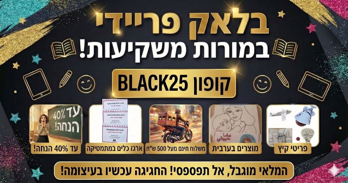 מורות וגננות יקרות, חג הקניות הרשמי הגיע – וזה הרגע המושלם להתחדש בציוד הכי משקיע במחירים שלא יחזרו!